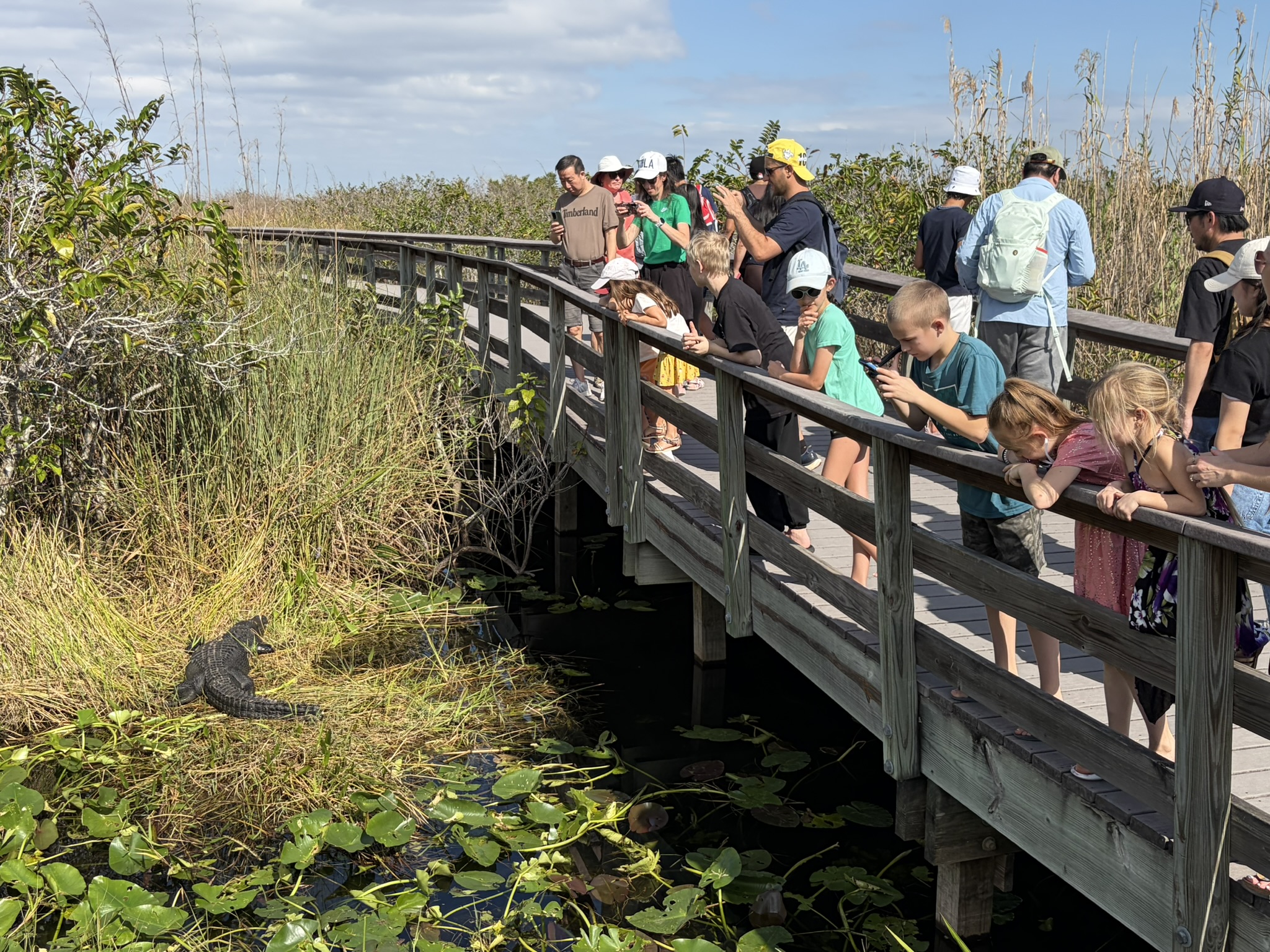 Zurück zur Reise, wir haben Lust, außer Wasser mal wieder intensiver das Landesinnere kennenzulernen, und gönnen uns einen zweitägigen Ausflug in die spannenden Everglades. Wir buchen ein Auto am Flughafen und werden dort am Schalter erstmal klassisch abgezogen. Plötzlich funktioniert angeblich die Kreditkarte nicht, und wir müssen eine andere, normale Karte nehmen. Dafür muss dann aber eine Extraversicherung gebucht werden. Gut, dafür bekommen wir einen anständigen Corolla, und los geht es. Die Everglades sind ein riesiger Nationalpark, der wie überall hier hervorragend organisiert ist. Es gibt entlang der Hauptstraße immer wieder Abzweigungen, von denen dann kleine Wanderungen von wenigen Kilometern abgehen. Wir schaffen es am ersten Tag, fünf Rundwege abzulaufen, und sind begeistert.
