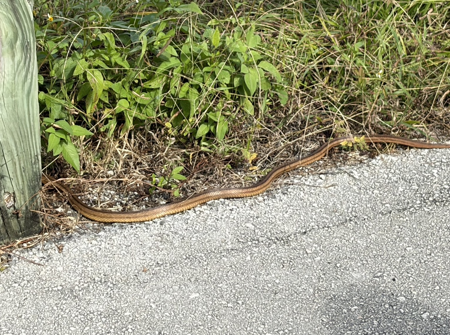 Die Unterkunftsmöglichkeiten im Park sind außer Campen eher schlecht, und so haben wir uns im Ort Florida City in der Nähe des Parkeingangs ein Zimmer in so einem typisch amerikanischen Hotel genommen. Das Zimmer war noch ganz in Ordnung, aber spätestens beim Frühstück wussten wir, warum es so günstig war. Kalter Kaffee, kalte bröselige Rühreier und labberiger Toast. Ganz zu schweigen vom Rest der Kundschaft, die sich in dem viel zu kleinen Frühstücksraum drängte. Wir lassen uns die gute Stimmung davon nicht verderben und fahren wieder in den Park nach Flamingo, wo das Kajak auf uns wartet. Der Unterschied zum Kanu ist übrigens, dass man beim Kajak ein Doppelpaddel und kein Stechpaddel hat. Wir müssen ohne Ende Papiere zu uns, unserer Gesundheit und den Ausschluss jeglicher Gewährleistung für den Verleiher ausfüllen. Als das erledigt ist und wir noch eine Belehrung zu Verhaltensweisen alleine in der Wildnis bekommen haben, geht es auch schon los. Wir paddeln gemütlich den wunderbaren urwaldmäßigen Fluss hinauf. Der Rand ist gesäumt mit Mangroven, und das einzige, was stört, sind eigentlich nur die anderen Boote. Als wir alle überholt haben und uns etwas absetzen konnten, ist um uns herum die reinste Ruhe, wunderbar. Wir stellen uns allerdings die Frage, warum wir einen langen Vortrag über wildlebende Tiere bekommen haben, wir sehen nämlich kein einziges. Auf der Rückfahrt haben wir noch etwas Zeit und laufen einen Weg mit dem schönen Namen Snake Bight (nicht Bite). Es geht durch dichten Wald, und natürlich sehen wir wieder eine Schlange. Wir finden, das muss reichen, und machen uns früher als geplant auf den Rückweg. Eine Nachfrage mit Foto bei Google sagt auch bei diesem Tier, dass es wohl harmlos für Menschen ist. Aber ausgesehen hat sie nicht so, fanden wir, und die war deutlich über einem Meter lang. Als wir abends wieder zurück an Bord sind, ist es schon dunkel, und wir sind ganz schön kaputt.