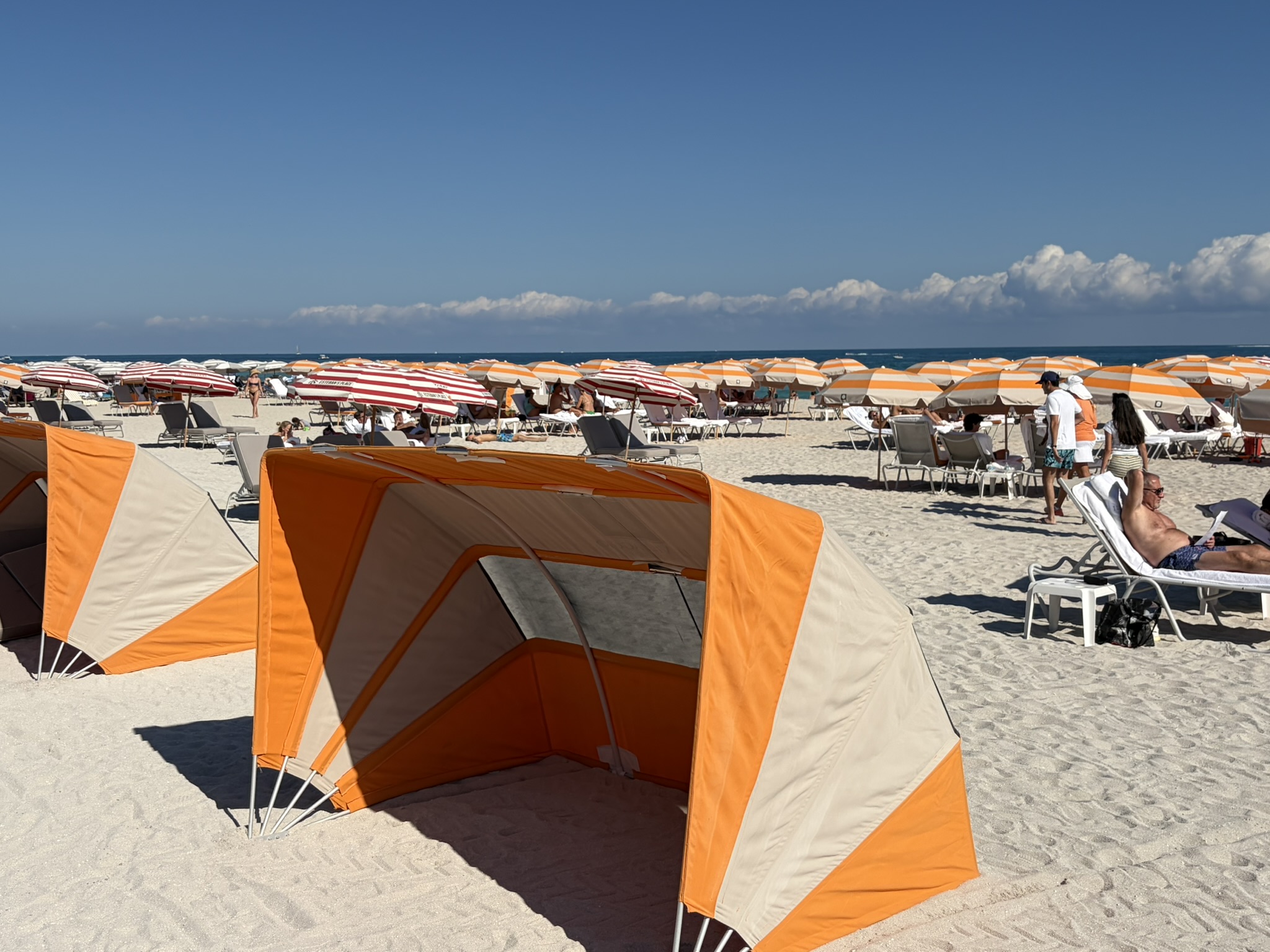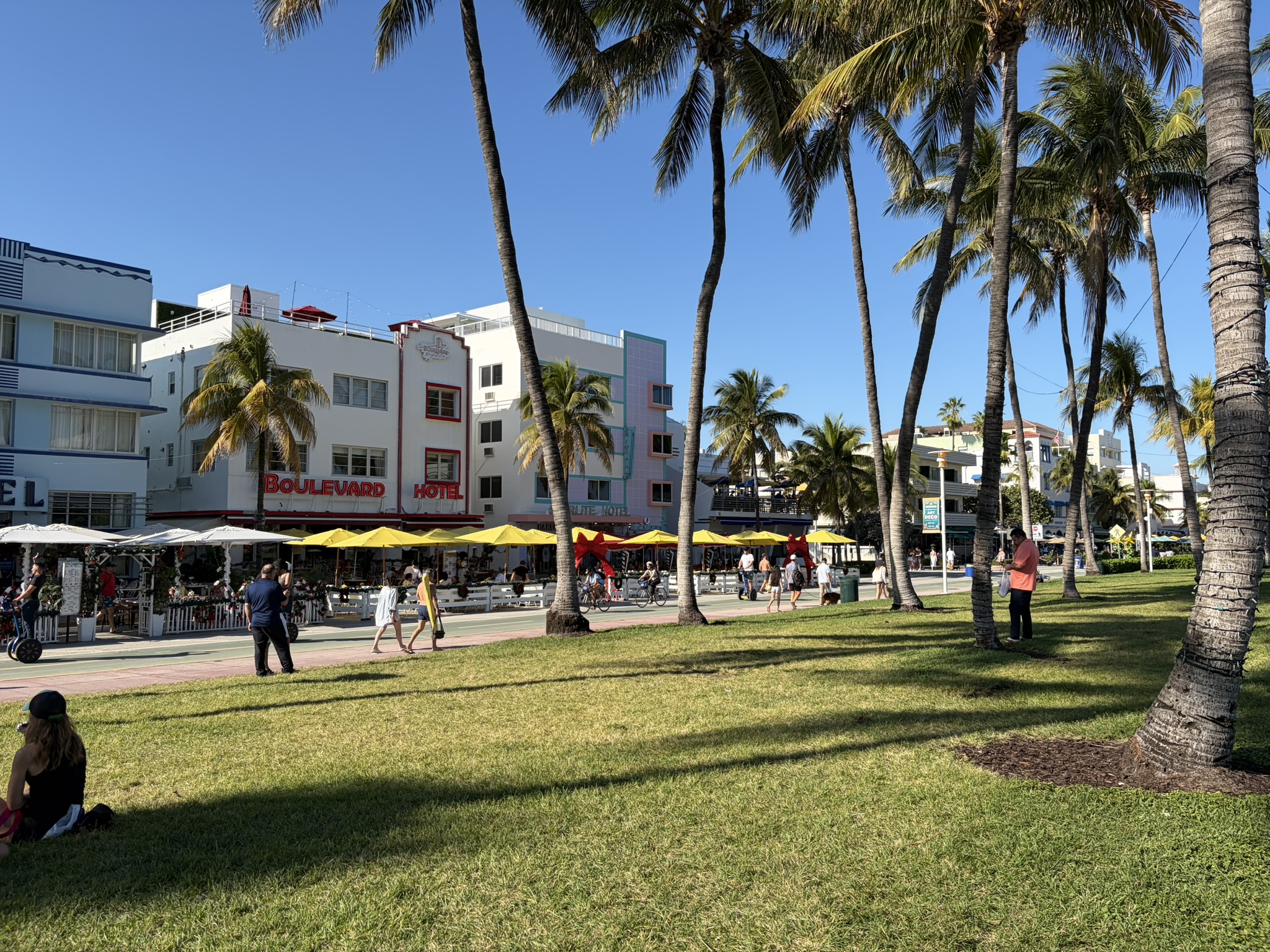 Wir machen uns nachdenklich weiter auf Richtung Süden und kommen zur Lincoln Road. Das ist die Einkaufsstraße, in der sich ein Riesenflohmarkt über fast die gesamte Insel von Ost nach West durchzieht. Spannend wird es aber dann Richtung Strand in dem Bezirk South Beach, an dem parallel der Ocean Drive entlangführt. Dieser besteht zu einem großen Teil aus alten Hotels, die in der sogenannten Art-Deko-Architektur vor 100 Jahren gebaut wurden. Diese haben oft runde Ecken, geschwungene Ornamente auf der Fassade und sind in zarten Pastelltönen angestrichen. In den 70er Jahren gab es Aktivisten, die es schafften, die Gebäude zu erhalten und es quasi als eine Kultur in Miami Beach zu etablieren. Der Ocean Drive selber ist mit seinen unendlich vielen Restaurants und dem schönen Lummus Park vor dem langen weißen Strand auch sehr sehenswert. Wir schlendern den ganzen Nachmittag gemütlich umher und kommen irgendwann am South Point heraus, wo ein langer Steg ins Wasser reicht und einen schönen Blick auf die Stadt bietet. Insgesamt sehr nett hier, wir sind froh, dass wir Miami Beach noch besucht haben.