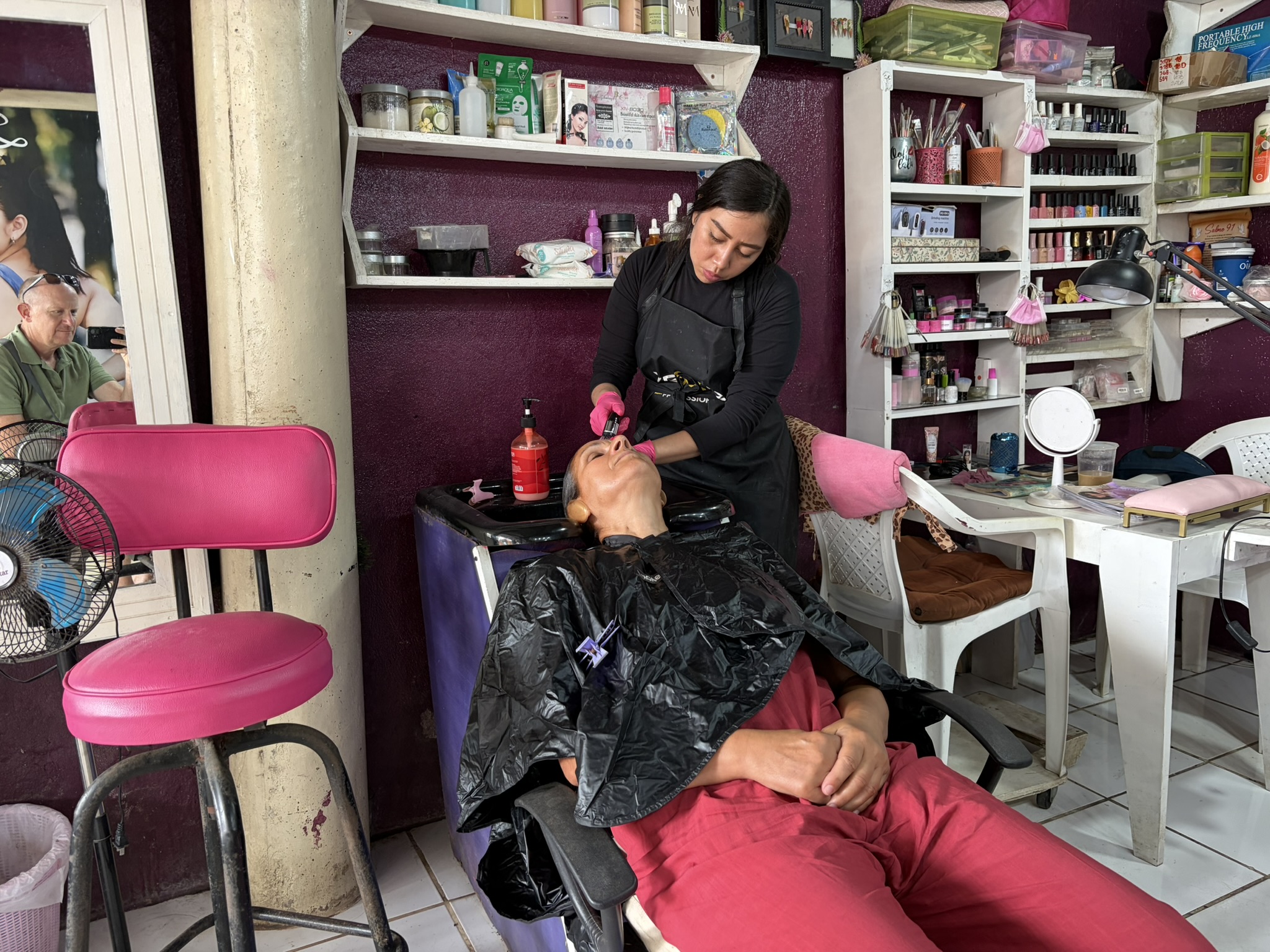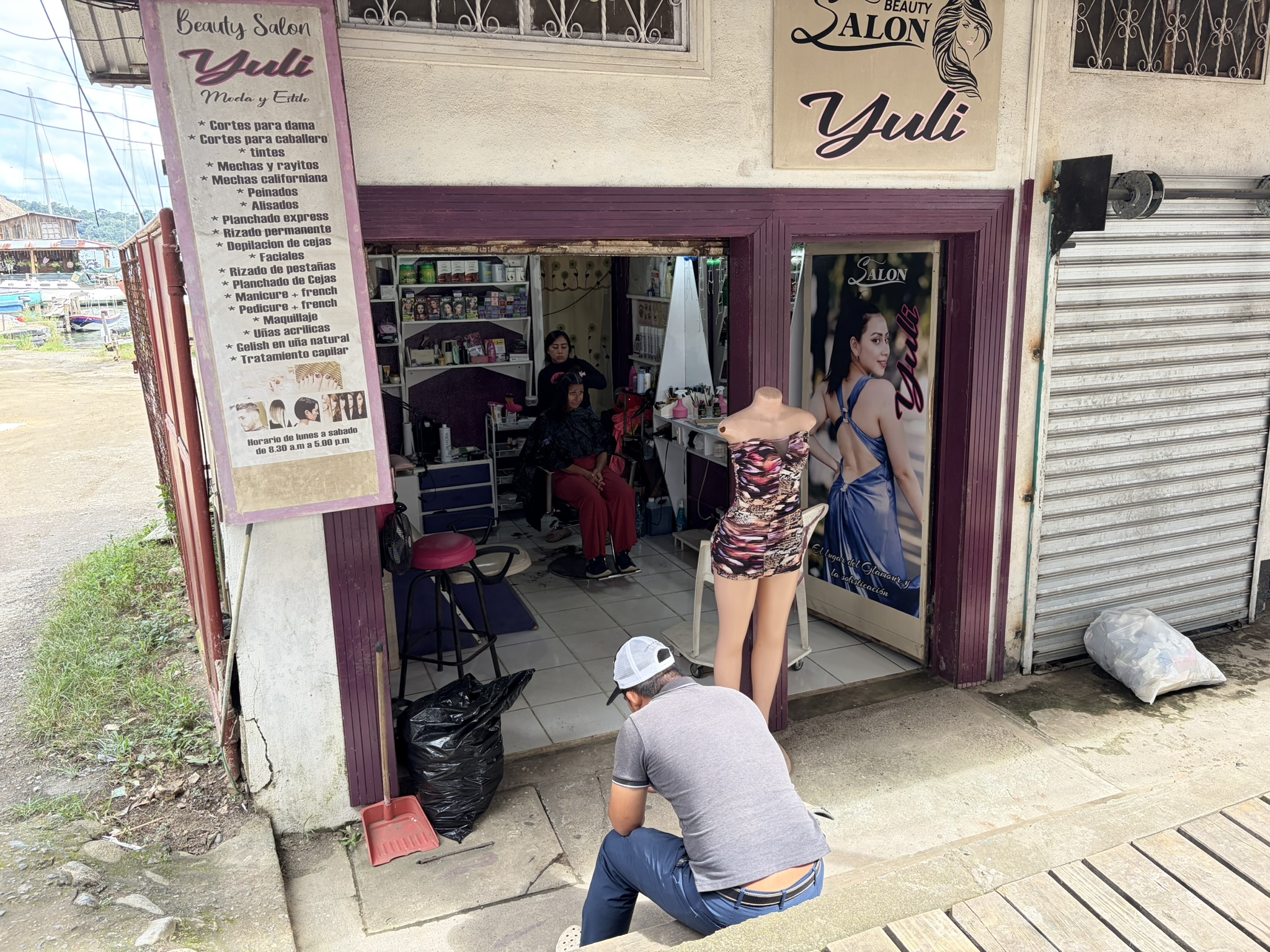 Die Fahrt rüber in den Ort Rio Dulce ist nicht weit und wir legen bei Hugo an. Er verspricht, das Ventil bis zum Nachmittag auszutauschen. Wir können also den ganzen Tag den Ort erkunden. Der erste Eindruck: Durch den Durchgangsverkehr sehr laut und chaotisch, kein Vergleich mit Livingston. Zuerst geht die Skipperin mutig in den nächstbesten Beautysalon und lässt sich die Haare schneiden und färben. Die ganze Aktion dauert fast 3 h und das Ergebnis kann sich sehen lassen, sehr hübsch. Wir finden anschließend ein Lokal, wo es leckere Pizza mit Seeblick gibt. Danach erledigen wir noch ein paar Sachen, wie zum Beispiel erkunden, mit was für Shuttles man durch das Land reisen kann. Wir wollen auf jeden Fall, wenn die Arbeiten einmal angelaufen sind, für 1–2 Wochen durch Guatemala reisen. Glücklich holen wir anschließend das reparierte Dinghy bei Hugo ab. Nur mal so zum Vergleich: seine Kosten lagen bei unter 20% von dem, was sie in den USA dafür verlangt hätten.