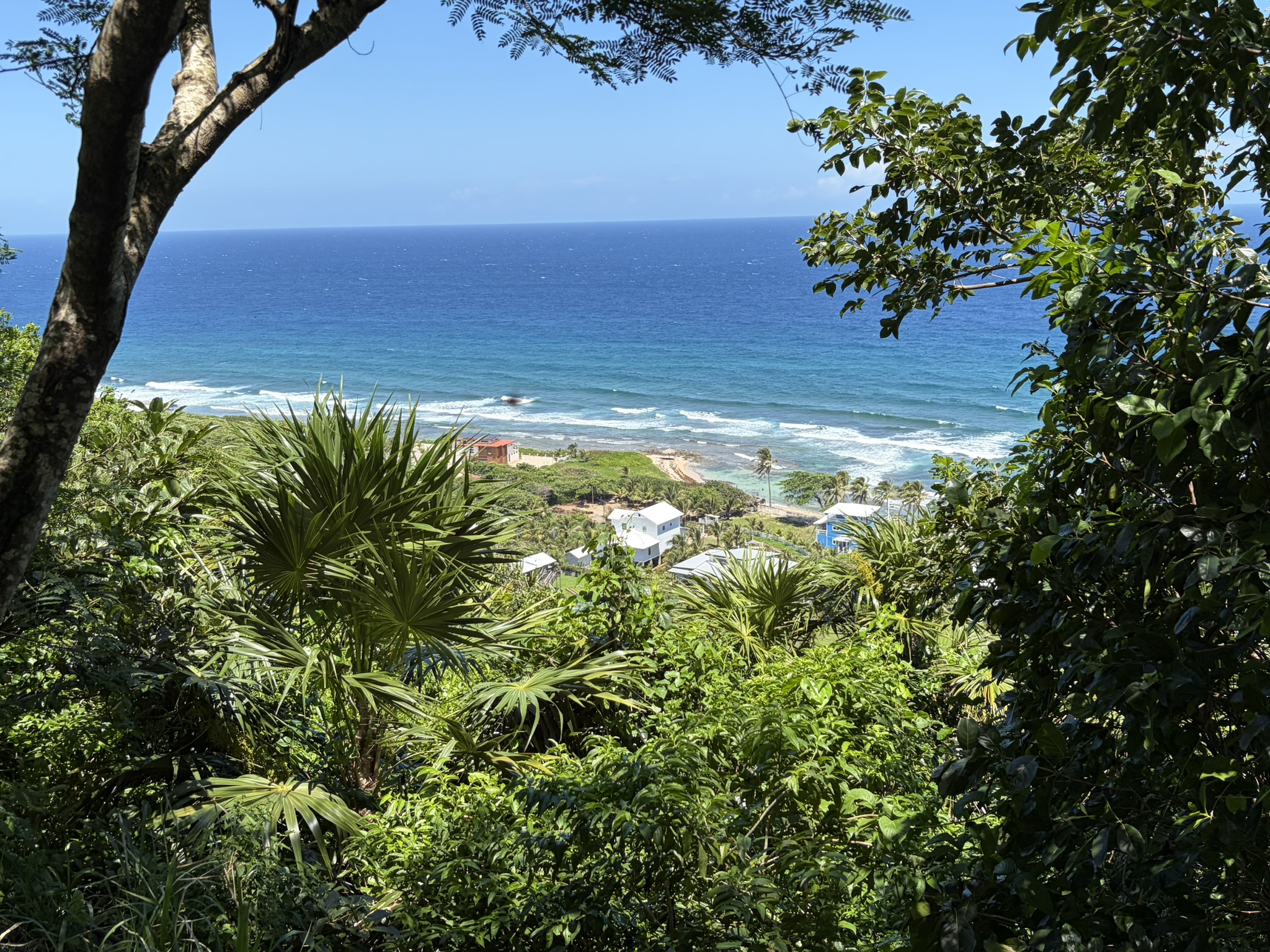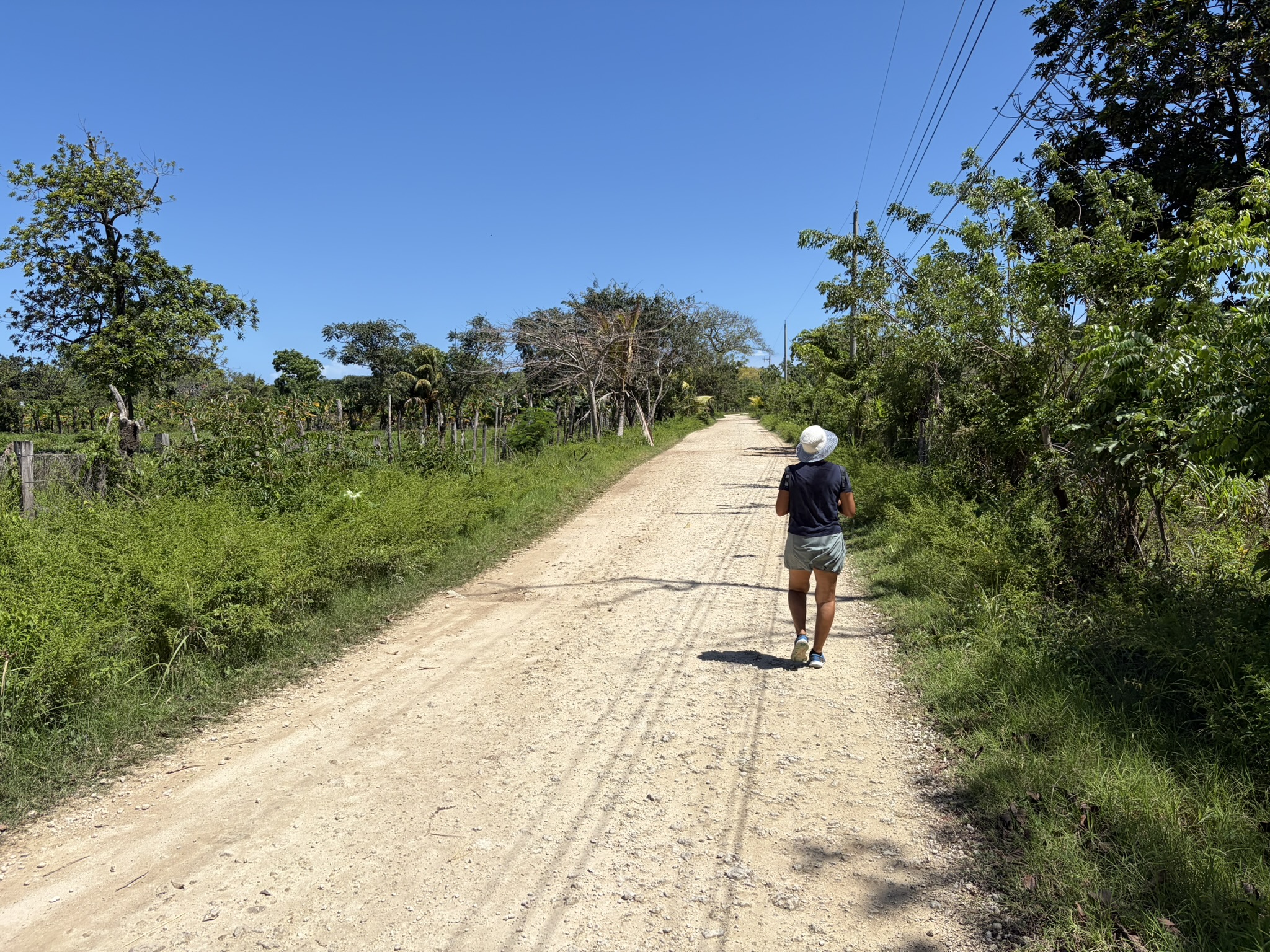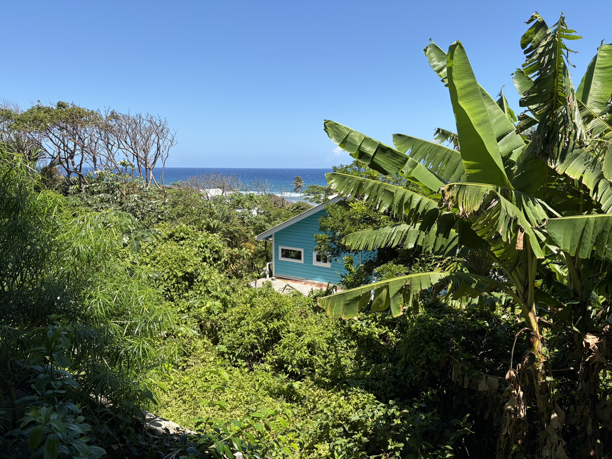 Wir wollen die Beine mal wieder in Schwung bringen und machen uns früh auf die Insel zu Fuß, zu durchqueren. Das Ziel ist der Pumpkin Hill, die höchste Erhebung auf Utila (80 m). Sobald man den Ort verlässt, ändert sich die Szenerie. Es ist ganz ruhig, und man sieht kaum noch Fahrzeuge. Die Landschaft ist sattgrün und sehr vielseitig. Der Weg, der den Hügel hinaufgeht, durch dichtem Wald und etwas rutschigem Boden, ist aber machbar. Auf halber Höhe hat man wunderschöne Ausblicke, aber ganz oben, wegen des Waldes eigentlich nicht mehr. Es gibt noch einen rostigen Turm, wo man hoch könnte, aber das ist uns etwas zu heikel. Der Rückweg geht übrigens flott, ein junger Mann hält mit seinem Quad an und nimmt uns mit zurück in den Ort. Das hat Spaß gemacht.