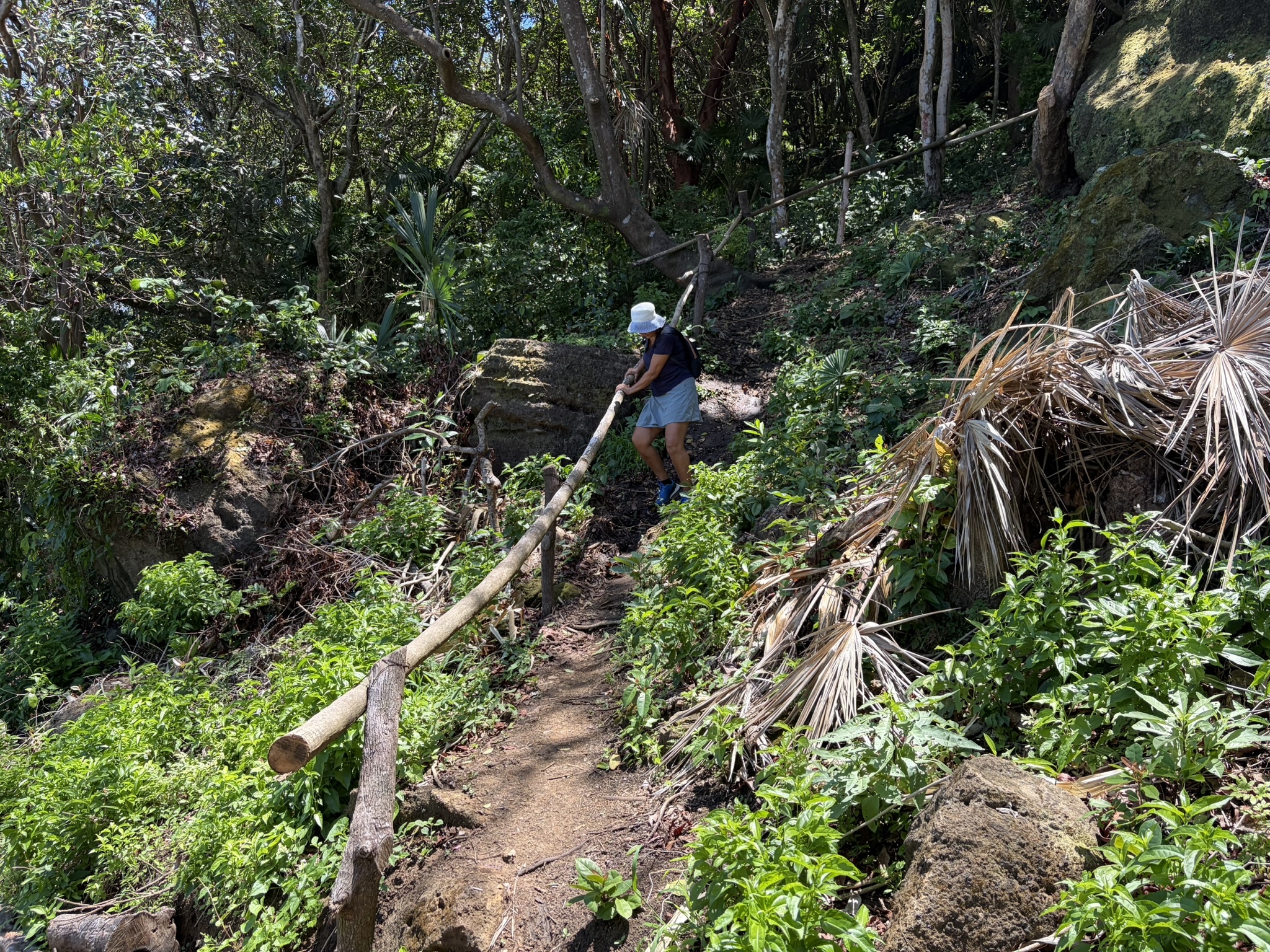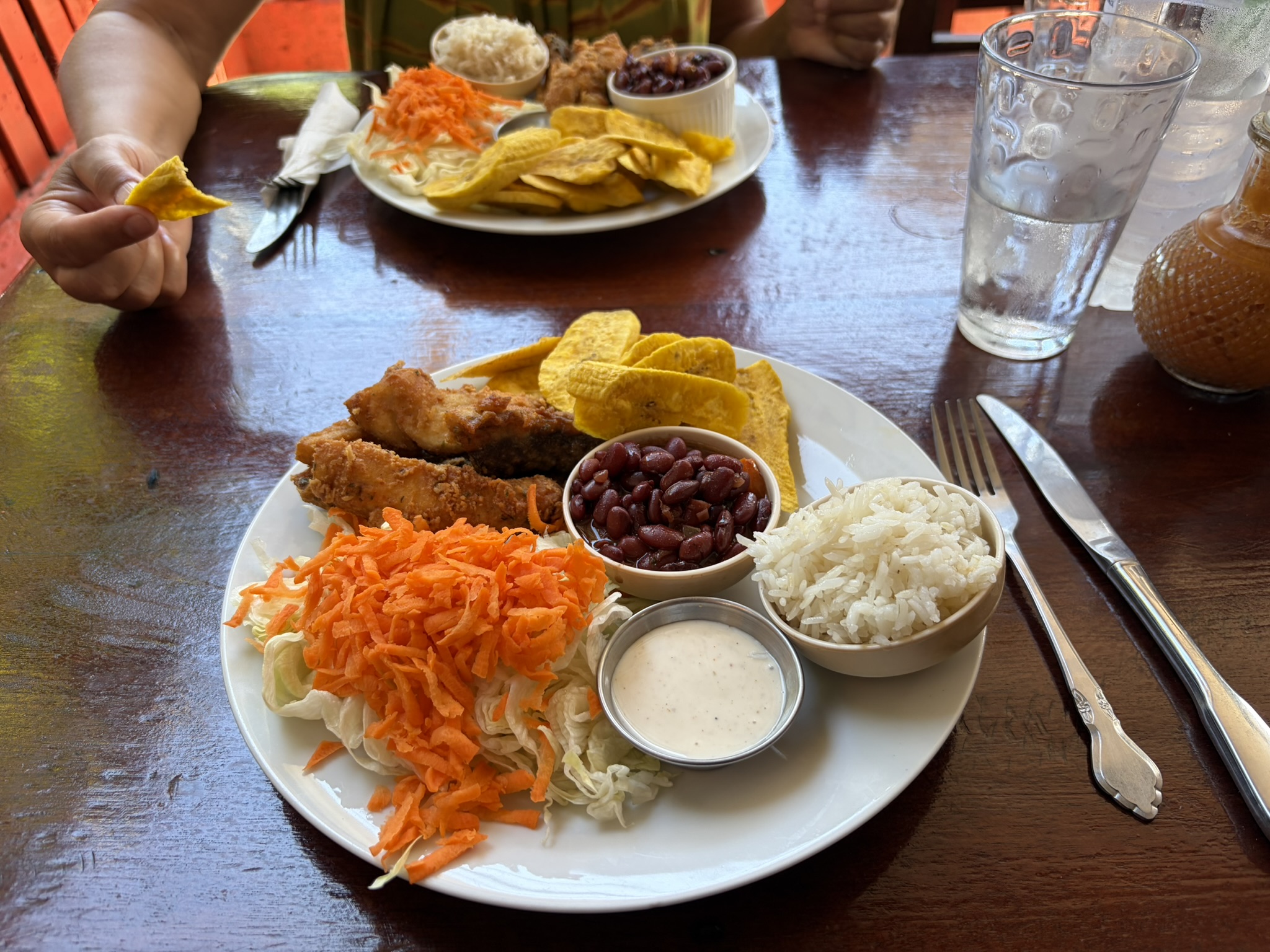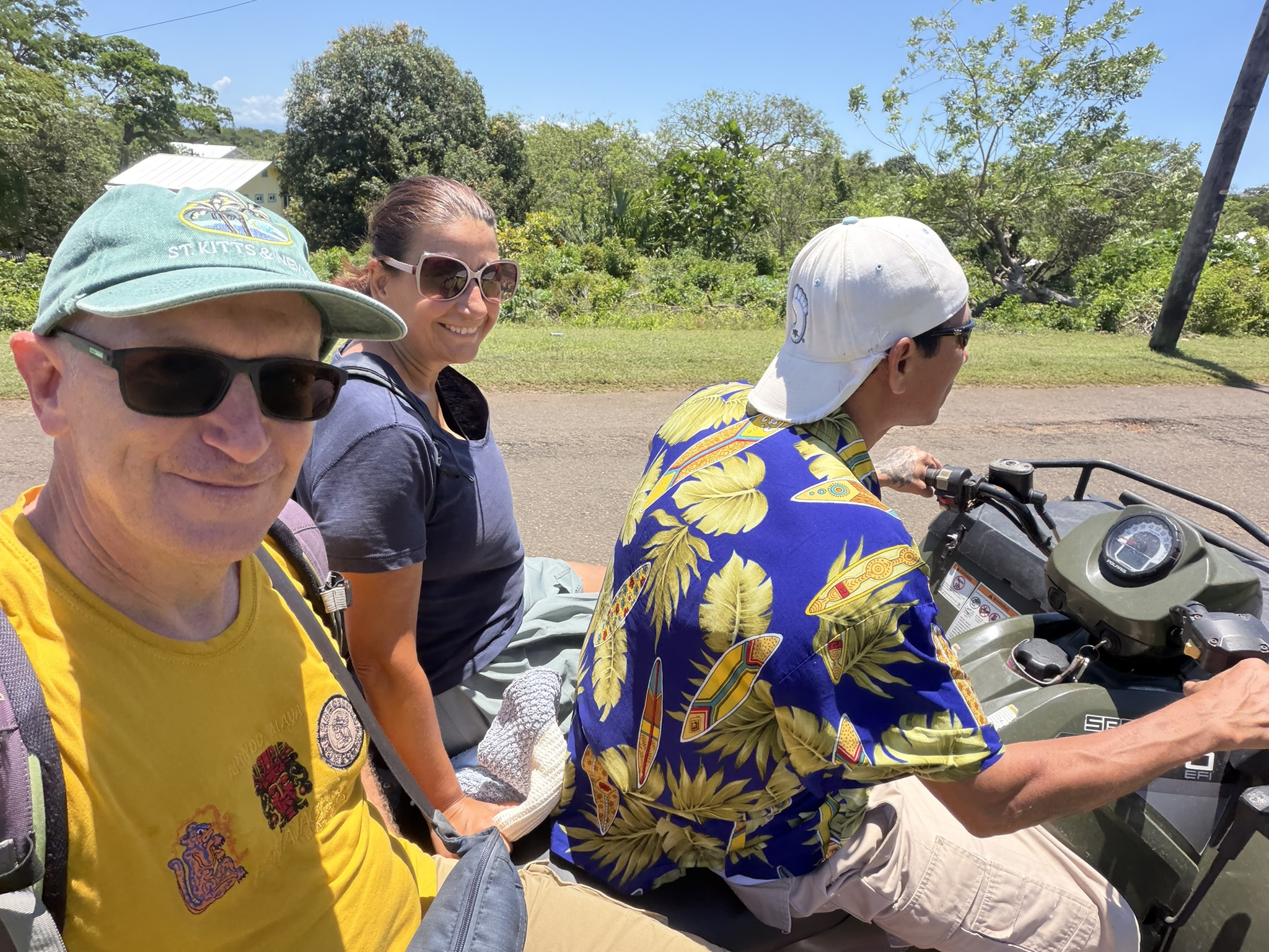 Wir wollen die Beine mal wieder in Schwung bringen und machen uns früh auf die Insel zu Fuß, zu durchqueren. Das Ziel ist der Pumpkin Hill, die höchste Erhebung auf Utila (80 m). Sobald man den Ort verlässt, ändert sich die Szenerie. Es ist ganz ruhig, und man sieht kaum noch Fahrzeuge. Die Landschaft ist sattgrün und sehr vielseitig. Der Weg, der den Hügel hinaufgeht, durch dichtem Wald und etwas rutschigem Boden, ist aber machbar. Auf halber Höhe hat man wunderschöne Ausblicke, aber ganz oben, wegen des Waldes eigentlich nicht mehr. Es gibt noch einen rostigen Turm, wo man hoch könnte, aber das ist uns etwas zu heikel. Der Rückweg geht übrigens flott, ein junger Mann hält mit seinem Quad an und nimmt uns mit zurück in den Ort. Das hat Spaß gemacht.