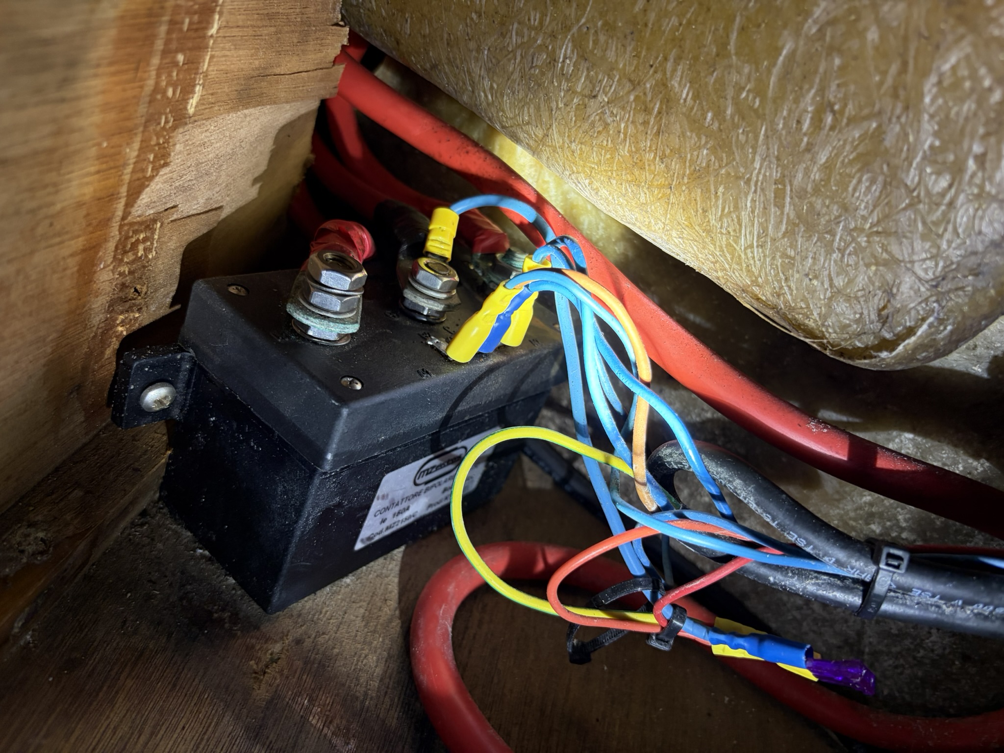 Es gibt noch ein weiteres Problemchen an Bord. Die Sicherung der Ankerwinsch springt während des Hochholens immer raus, was ziemlich nervig ist. Nach diversen Recherchen mit ChatGPT sind die Kontakte des Relais der Winsch die Verdächtigen. Diese sind wirklich ziemlich angerostet, und so bauen wir alles auseinander, reinigen es und bauen es wieder zusammen. Ein paar Tests beim Hochholen unter Last scheinen wirklich eine Verbesserung zu zeigen. So richtig merken wir es aber erst, wenn der Anker die letzten paar Meter macht. Das testen wir dann bei der Abfahrt.