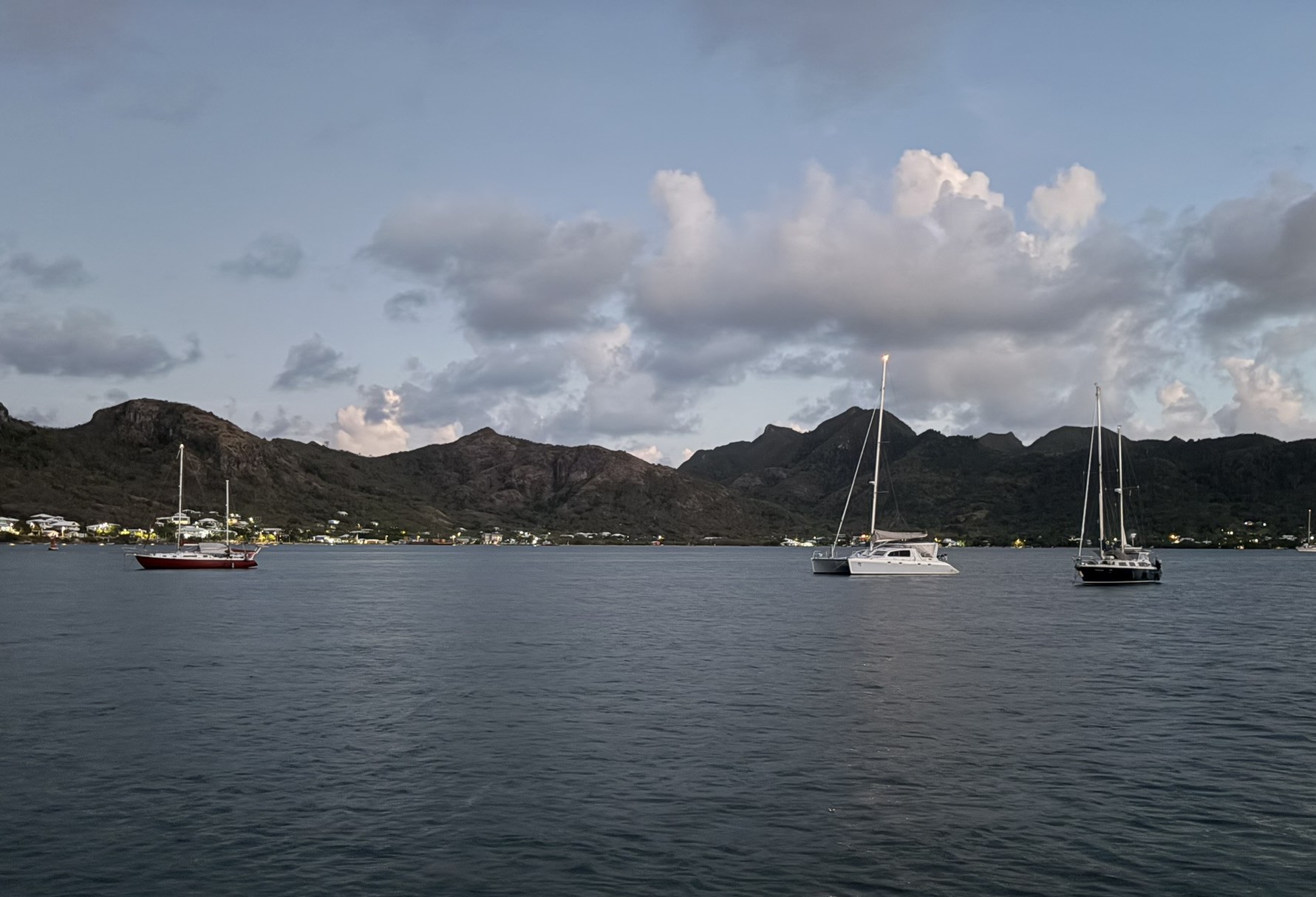 Tag 1. Der Wind steht hier morgens meistens auf Südost, was uns für den Anfang gut passt. Also auf um 05:00 und Anker hoch um 06:00. Soll mal keiner sagen, wir hätten Urlaub. Außerdem brauchen wir wohl bald mal eine neue Ankerwinsch, das Hochholen wird immer anstrengender. Der Wind kommt, wie vorhergesagt, und den angepeilten Winkel zum Wind bekommen wir auch gesegelt. Die Wellen sind nicht sehr hoch, da wir die aber von schräg vorne haben, werden wir trotzdem ordentlich hin- und hergeschüttelt, und die Skipperin braucht nach längerer Zeit mal wieder eine Reisetablette. Wir kommen gut durch die Nacht und schaffen es beide, ein paar Stunden zu schlafen.