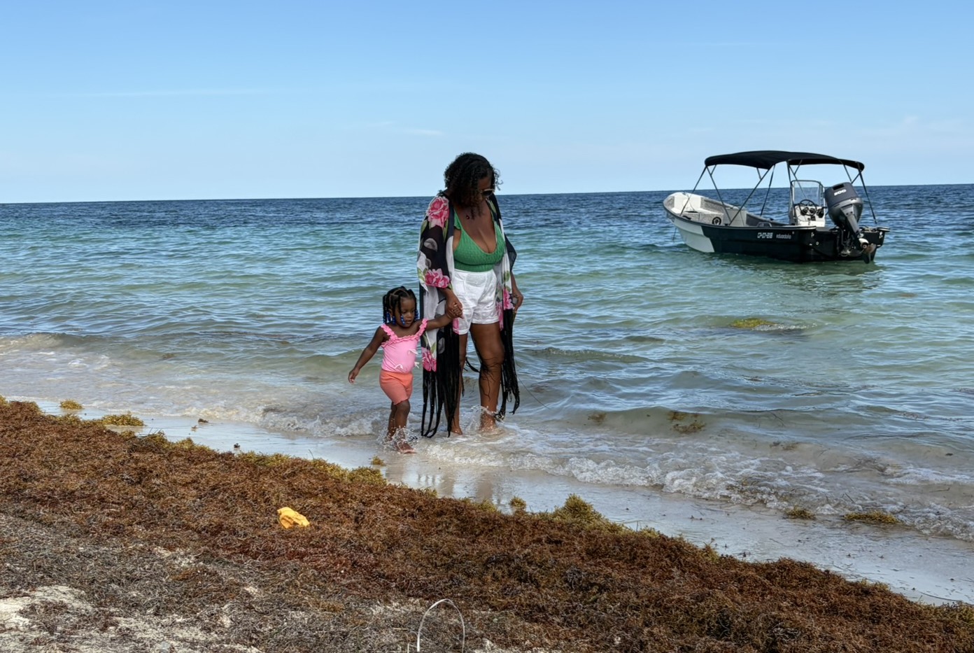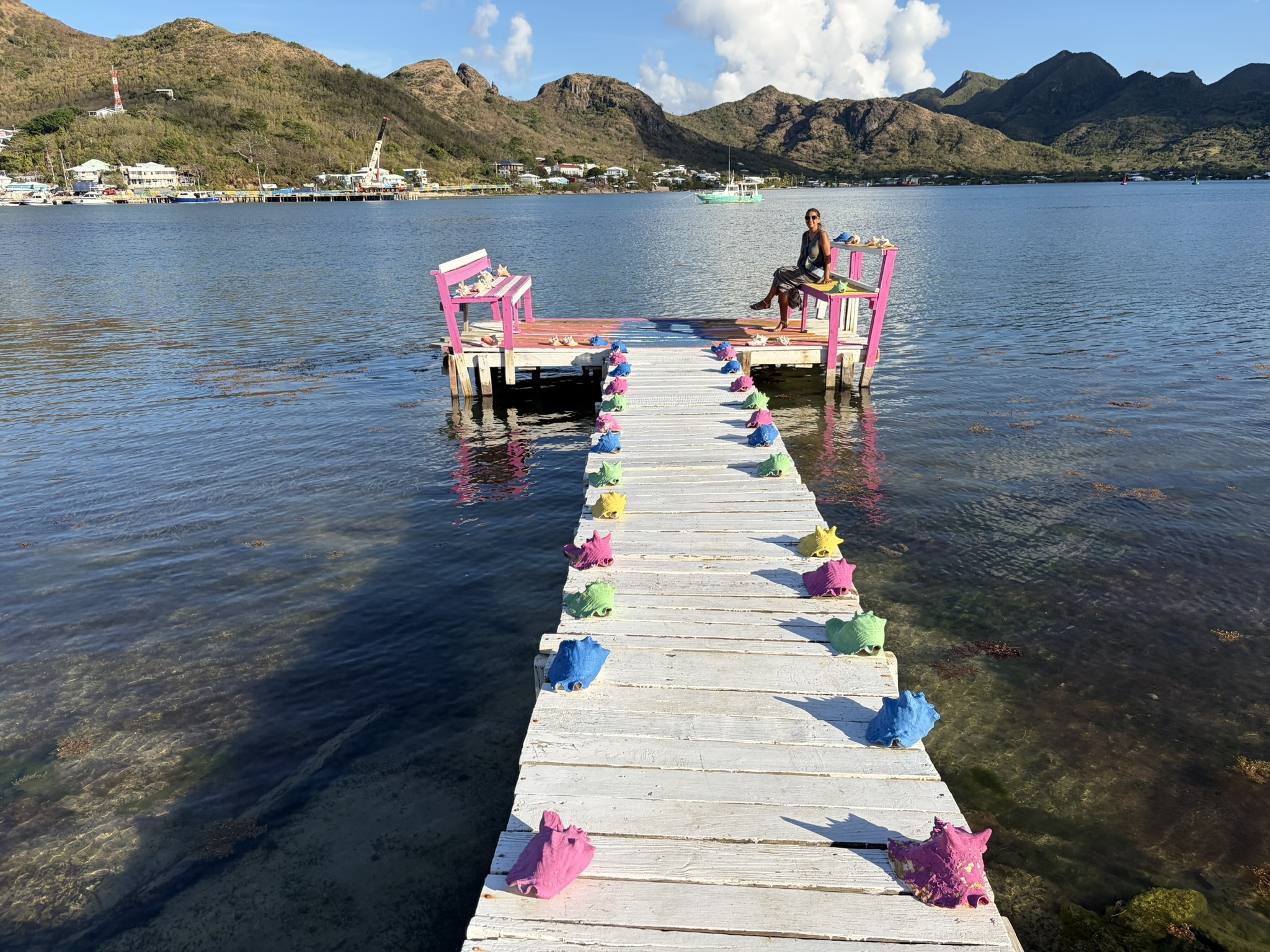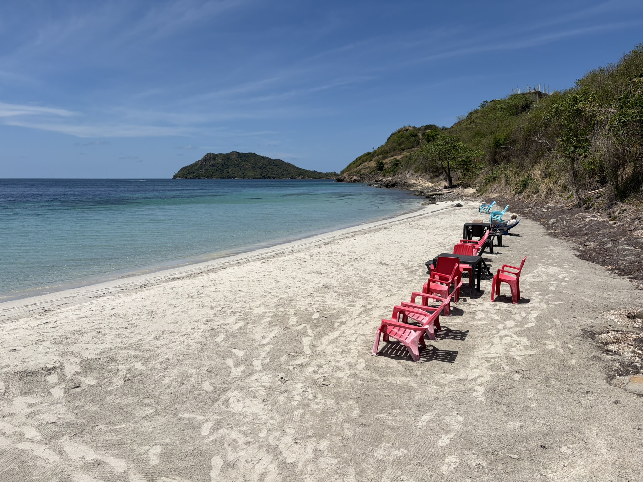 Am nächsten Tag ist der Skipperin etwas unwohl und deshalb mache ich mich alleine auf und brause diesmal im Uhrzeigersinn um die Insel. Die Strecke ist insgesamt nicht sehr lang und man ist bei gemächlicher Fahrweise in weniger als einer Stunde herum. Zum Spazierengehen geschweige denn Wandern ist es schon wieder viel zu heiß. Aber auf dem Moped ist es mit dem Fahrtwind total angenehm. Am Nachmittag bekommen wir Besuch an Bord von Sophia und Anthony. Er ist gebürtig von hier und hat im Tourismus viele unterschiedliche Jobs. Zum Beispiel Guide zum Wandern, Bootsausflüge managen und Begleitung von Kreuzfahrttouristen. Alle 4–6 Wochen hält hier ein Schiff mit über 1000 Passagieren an, und die Insel putzt sich dafür jedes Mal raus. Es werden Stände aufgebaut und viele Angebote für Ausflüge gemacht. Er ist einer von 25 Betreuern für die Leute. Das nächste Schiff kommt am Mittwoch, was wir wohl knapp verpassen werden. Ein sehr netter Nachmittag an Bord.
