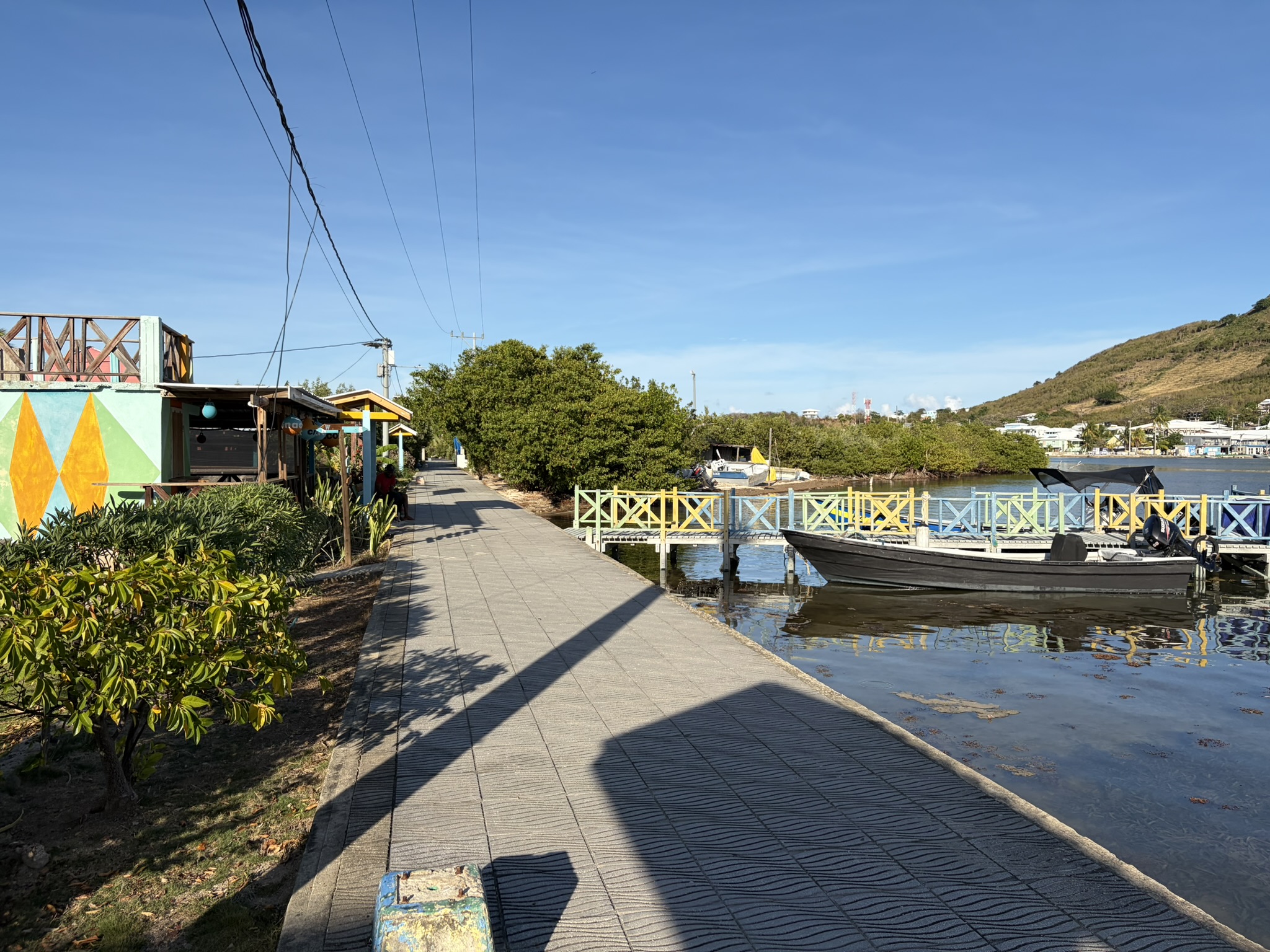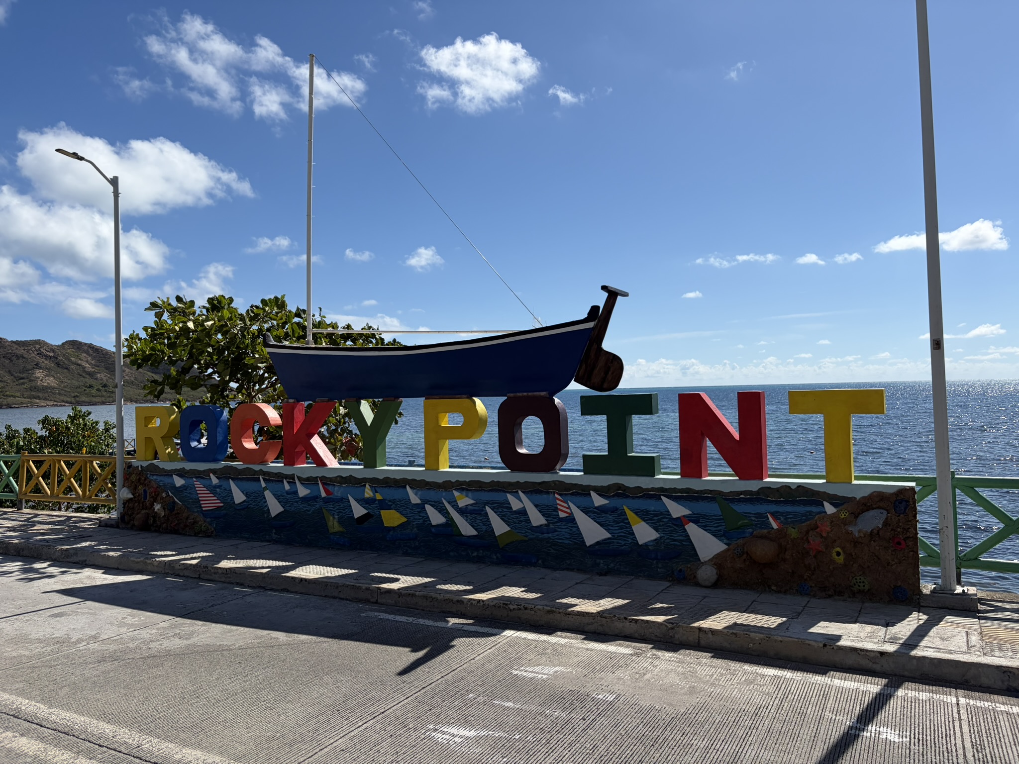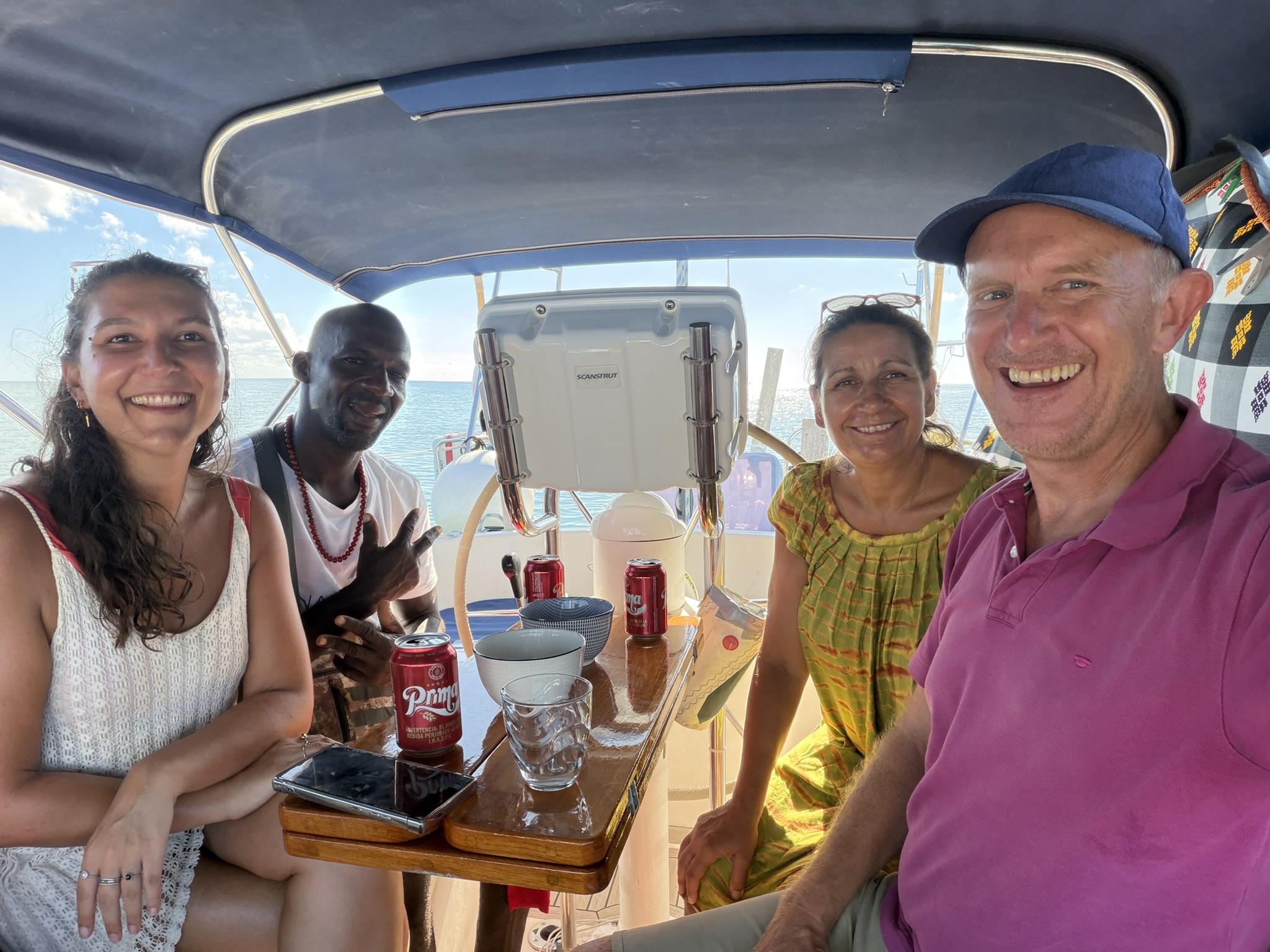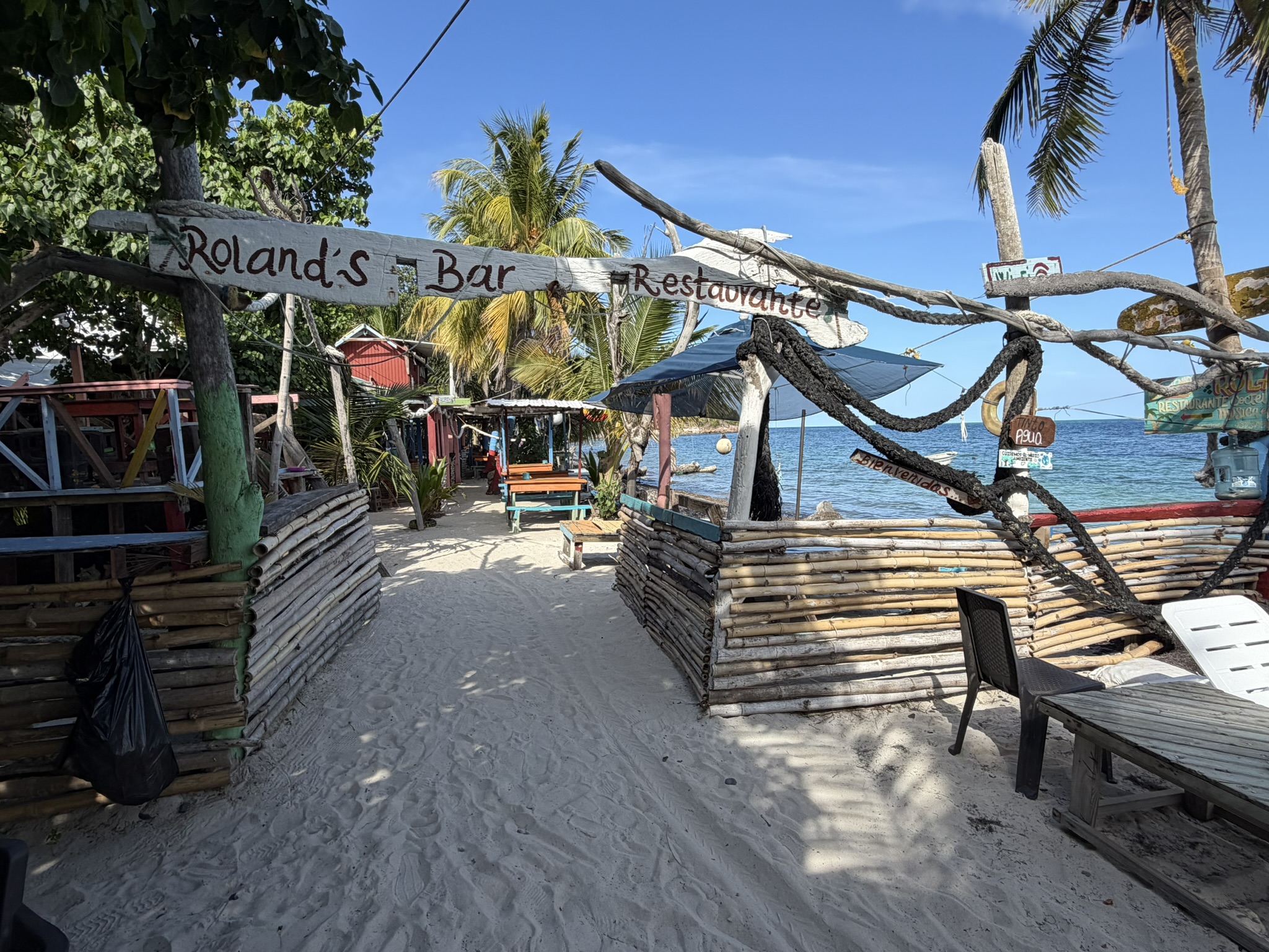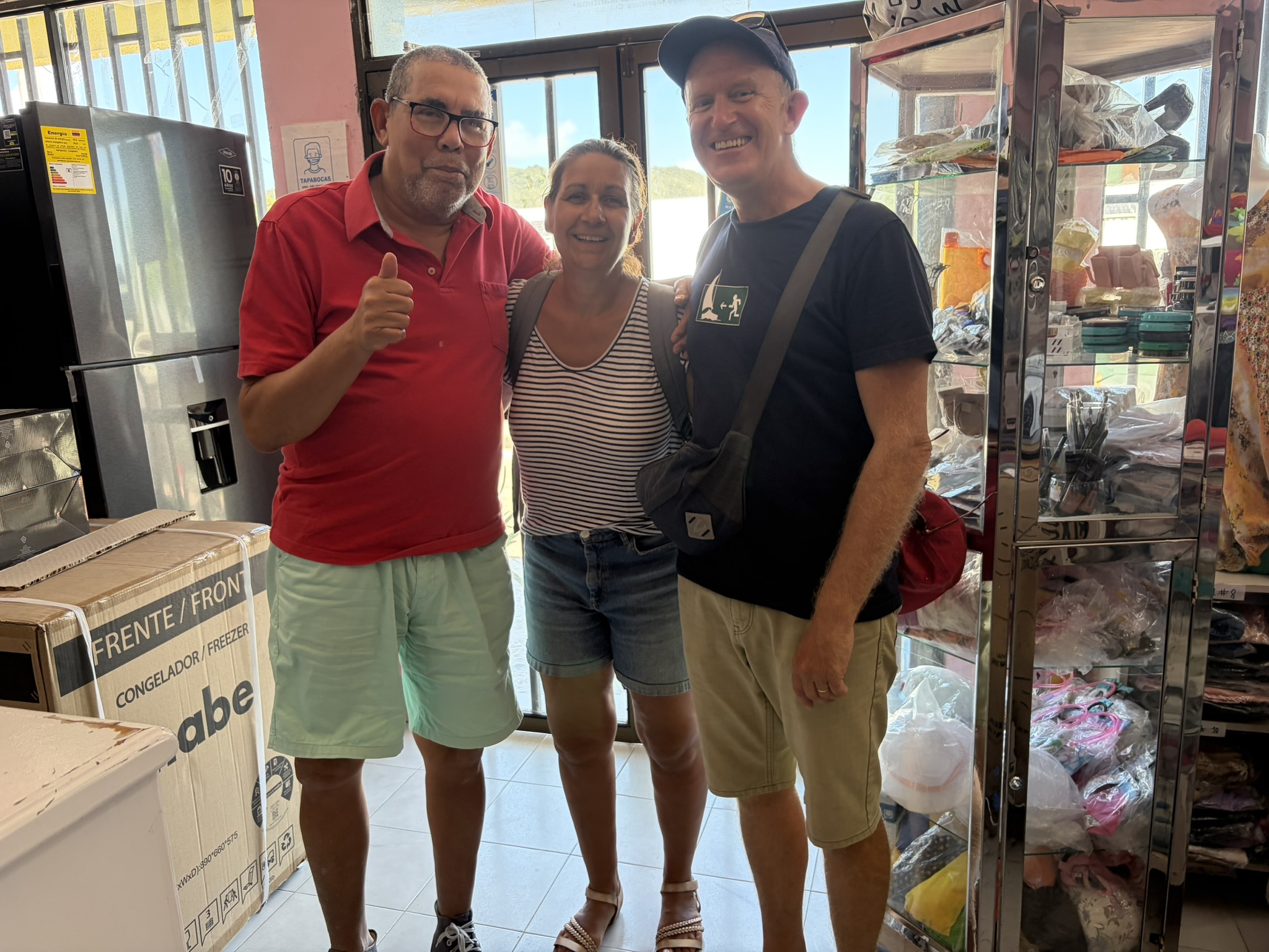 Der Tag begann mit einem Telefonat mit unserem Agenten Mr Bush: Captain, I need to see you in my office at 10am. OK, can we come a little bit later? Negative, Captain, you must be here at 10. Also Frühstück abbrechen und wir machen uns auf zum Pier der größten Ortschaft Santa Isabel auf Providencia. Mr Bush ist nur als Nebentätigkeit Agent. Eigentlich hat er einen Krimskramsladen für Haushaltswaren und merkwürdige Klamotten. Los ging es dann doch erst um 11.30. Sein Sohn Jean Paul (er heißt wirklich so) fährt mich ein Stück die Straße runter zur Immigration und dem Capitano für den Hafen. Alle sind sehr freundlich und nach einer Stunde sind wir einklariert und bekommen unsere Stempel in die Pässe. Am Nachmittag haben wir Glück, wir brauchen ein paar neue Schlauchschellen, weil die Wasserpumpe tropft, und ich hoffe, die mit einer zweiten Schelle etwas dichter zu bekommen. Diese gab es im gut sortierten Handwerkerladen.