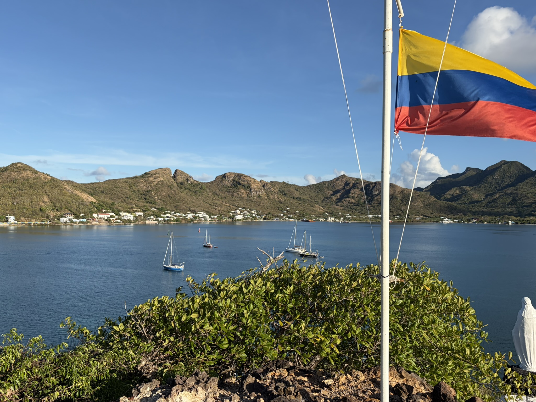 Providencia gehört zusammen mit der 90 km südlich gelegenen Insel St. Andres zu Kolumbien und hat nur 6000 Einwohner. Sprachlich ist das hier ein ganz schöner Mix. Die nette Dame von der Immigration hat es mir erklärt. Offiziell ist Spanisch die Hauptsprache, aber Englisch wird als Geschäftssprache genutzt, weshalb es hier auch sehr verbreitet ist. Aber im Alltag sprechen die Leute untereinander meistens Kreol, eine Mischung aus beidem mit etwas Französisch dabei. Wenn man etwas Spanisch und Englisch kann, versteht man einiges. Die Menschen hier haben grundsätzlich den Ruf, außergewöhnlich freundlich zu sein, und wir können das bestätigen. Jeder grüßt, und ständig wird einem Hilfe angeboten. Und Kriminalität ist auch kaum verbreitet, Dinghy-Diebstähle kommen nie vor, wird uns versichert.
