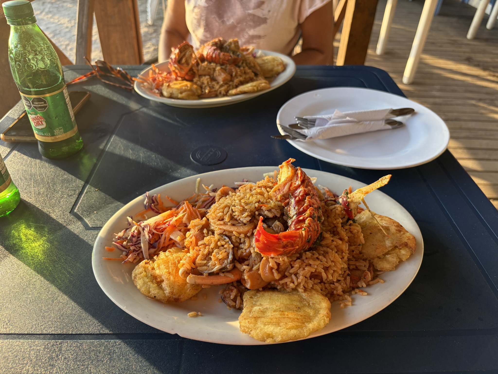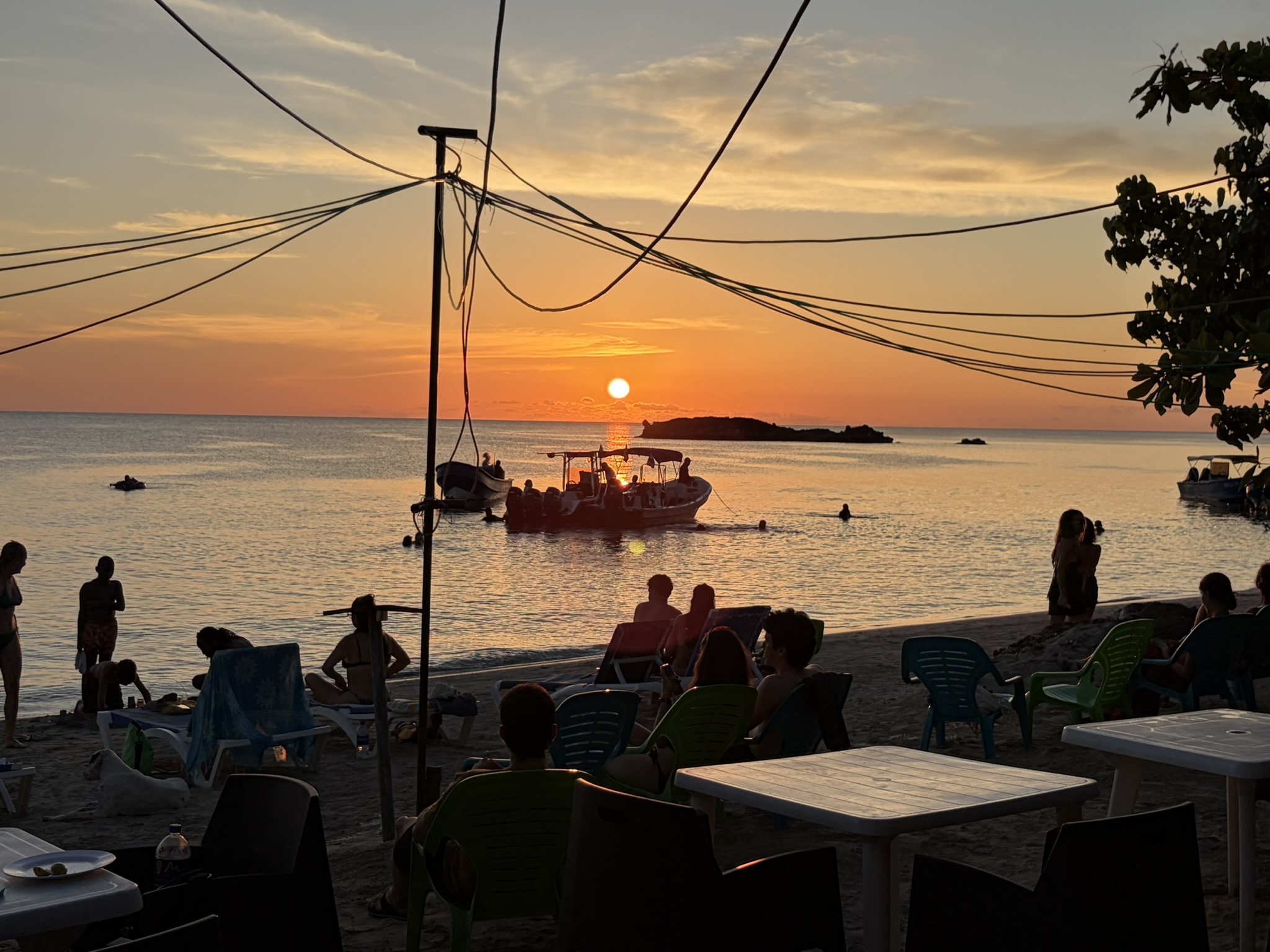 Der Verkehr über die Insel findet zum größten Teil mit Motorrollern statt, die zu Hunderten über die bröckeligen Straßen der Insel brettern. Und natürlich mieten wir uns für 2 Tage auch mal eine kleine Yamaha und düsen los. Gar nicht mal so schlecht motorisiert findet der Skipper und spielt mit dem Gashebel, bis die Skipperin als Sozius ihn schnell wieder einbremst. Wir fahren zuerst zum Neptun Beach, wo es eine kleine Strandbar gibt und wir einen erstklassigen Lemondrink bekommen. Der Besitzer Robinson erzählt etwas über sein Leben und die vielen Jobs, die er hat, um über die Runden zu kommen. Danach kommt noch Sophia aus Österreich dazu und wir halten einen langen Schnack. Sie ist seit ein paar Monaten alleine in Südamerika unterwegs und es gibt jede Menge Stories zu erzählen. Wir fahren noch ein paar weitere Strände ab und erfreuen uns am authentischen Inselleben. Da Sonntag ist, sind mehr Einheimische Familien als Touristen an den Stränden und man könnte den Kindern stundenlang beim Spielen zuschauen. Unterwegs finden wir noch das einzige Stadion auf der Insel wo ein Baseballspiel stattfindet. Eigentlich ganz cool, es läuft laute Musik und so ganz erst nehmen tun die Spieler das hier nicht. Zum Dinner landen wir am Southwest Beach, wo es den besten Sonnenuntergang der Insel geben soll. Und wir werden nicht enttäuscht. Neben unserer Fischplatte mit Reis ist es das Sahnehäubchen an diesem Tag. Im Dunkeln fahren wir nach Hause, was bei den vielen Schlaglöchern nicht ganz so einfach ist.