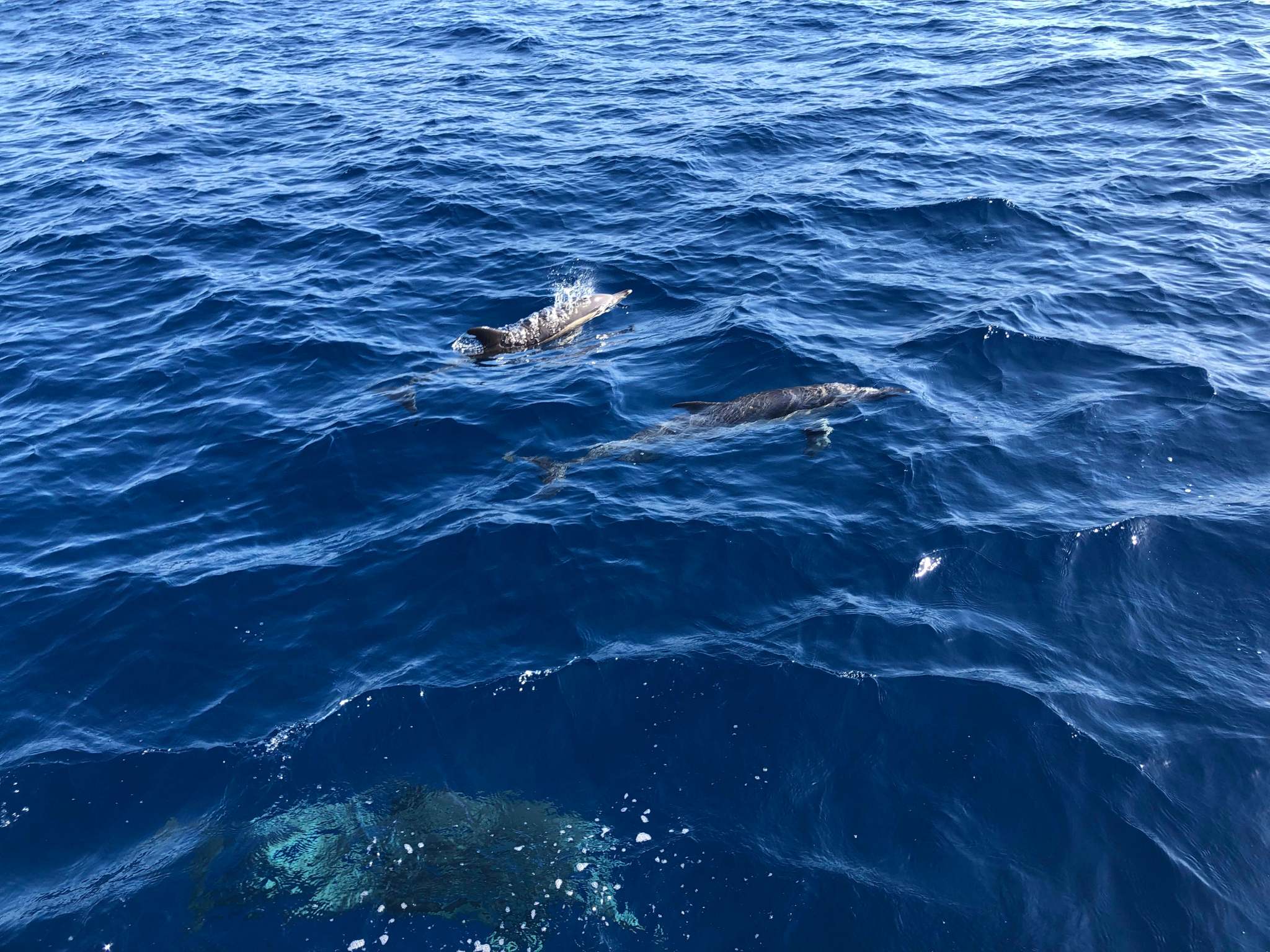 Da wir eher auf einem Überführungstörn als auf einer Urlaubssegelreise sind, mussten wir am nächsten Tag schon wieder weiter in Richtung Gibraltar. Das war jetzt unser längster Trip auf dieser Reise obwohl es gar nicht so geplant war, 155sm in 30h. Weil der Wind einen Tag später umschwenken soll und voll aus West kommt sind wir an Almeria vorbeigezogen und wollten möglichst weit Richtung Malaga kommen. Die ersten 10h hatten wir phantastisches Segelwetter und mussten erst in der Nacht den Motor anmachen. Danach wechselte es hin und her und wir hatten mit Segel rauf und runter gut zu tun. Was soll man auch sonst machen außer zu lesen. Ein Highlight waren einige Delphinschulen die uns immer wieder begleitet haben und um das Boot geschwommen sind.