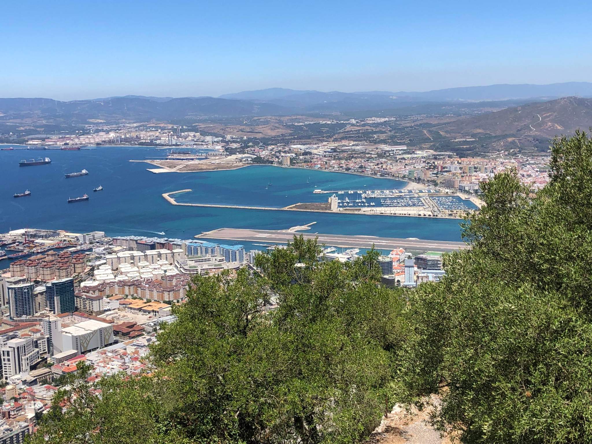 Die Anfahrt war aber schon beeindruckend. Der Affenfelsen von Gibraltar schälte sich nach einiger Zeit aus der Entfernung aus dem Nebel hervor und wurde immer größer. Zu guter Letzt fuhren wir einmal drum herum in die riesige Bucht hinein. Gibraltar ist für die Supertanker dieser Welt ein beliebter Tankstopp in beide Richtungen. Und so mussten wir gut aufpassen, dass wir sicher um die dicken Pötte herumkamen. Die Marina liegt nicht in Gibraltar sondern in La Linea der ersten spanischen Stadt direkt hinter der Grenze. Unser Boot liegt mit super Aussicht quasi direkt unter dem Felsen. Die Überfahrt hierher super geklappt, wir sind von dem Boot begeistert.