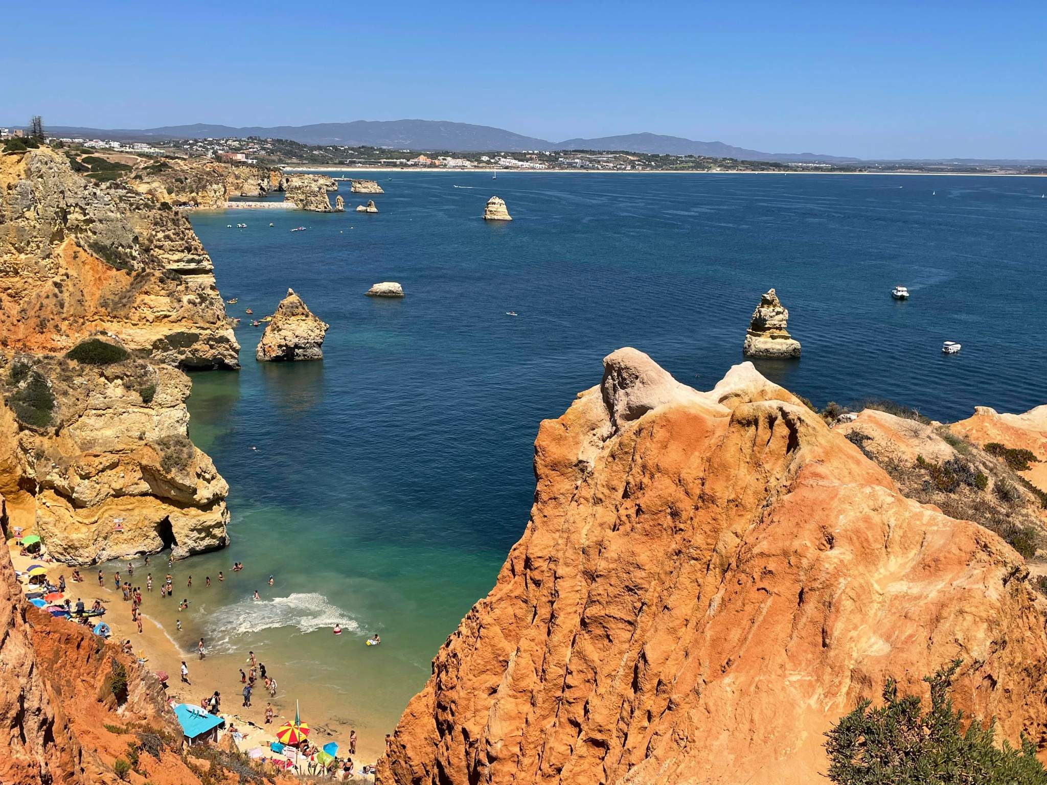 Am nächsten Tag mussten die Seglerbeine dringend bewegt werden und wir haben einen sehr unterhaltsamen Spaziergang die Küste entlang der vielen Felsen und Strände bis nach Luz gemacht. Den Weg kannten wir schon von unserem letzten Besuch letztes Jahr hier, als gerade die Pandemie losging.